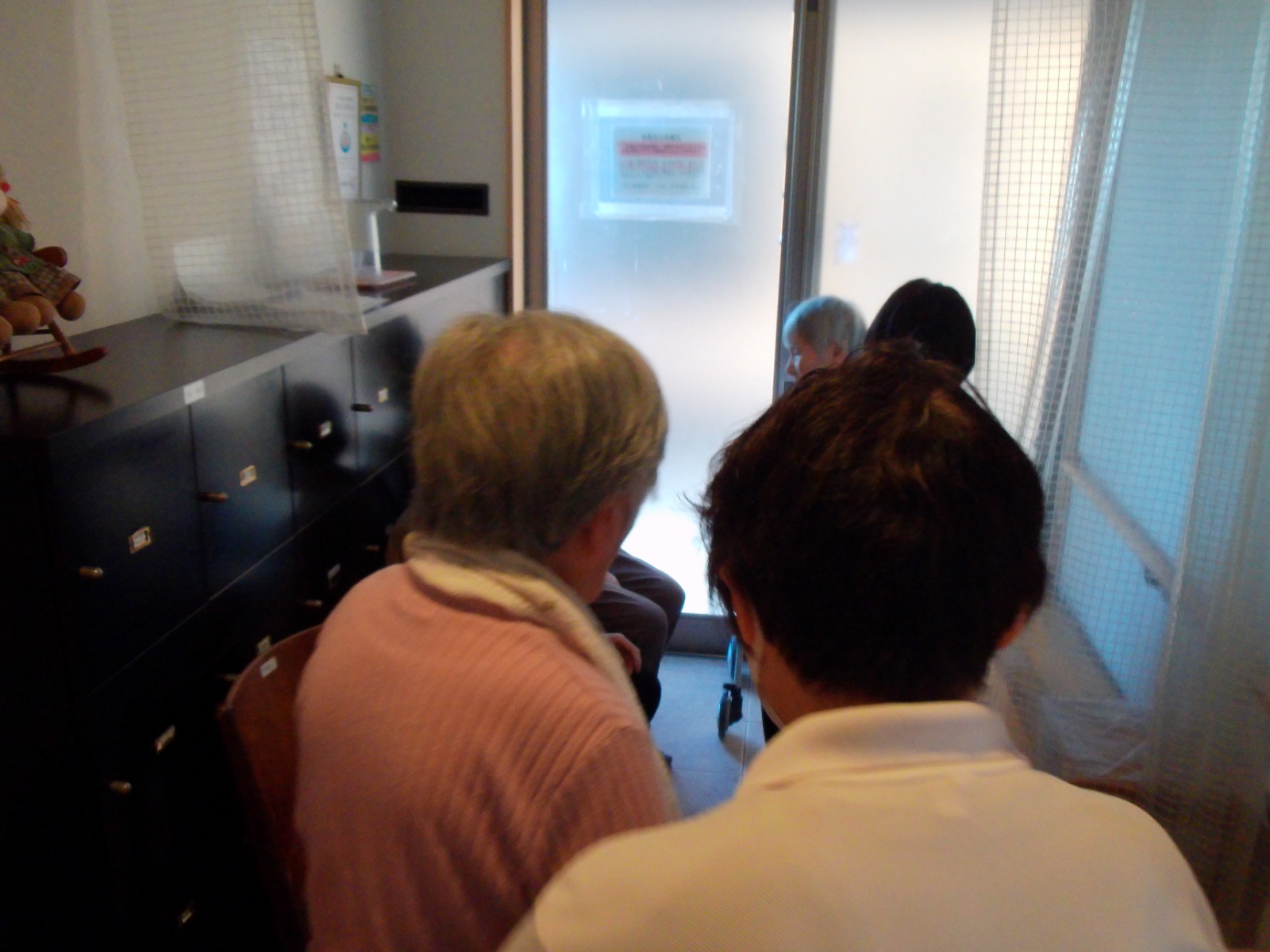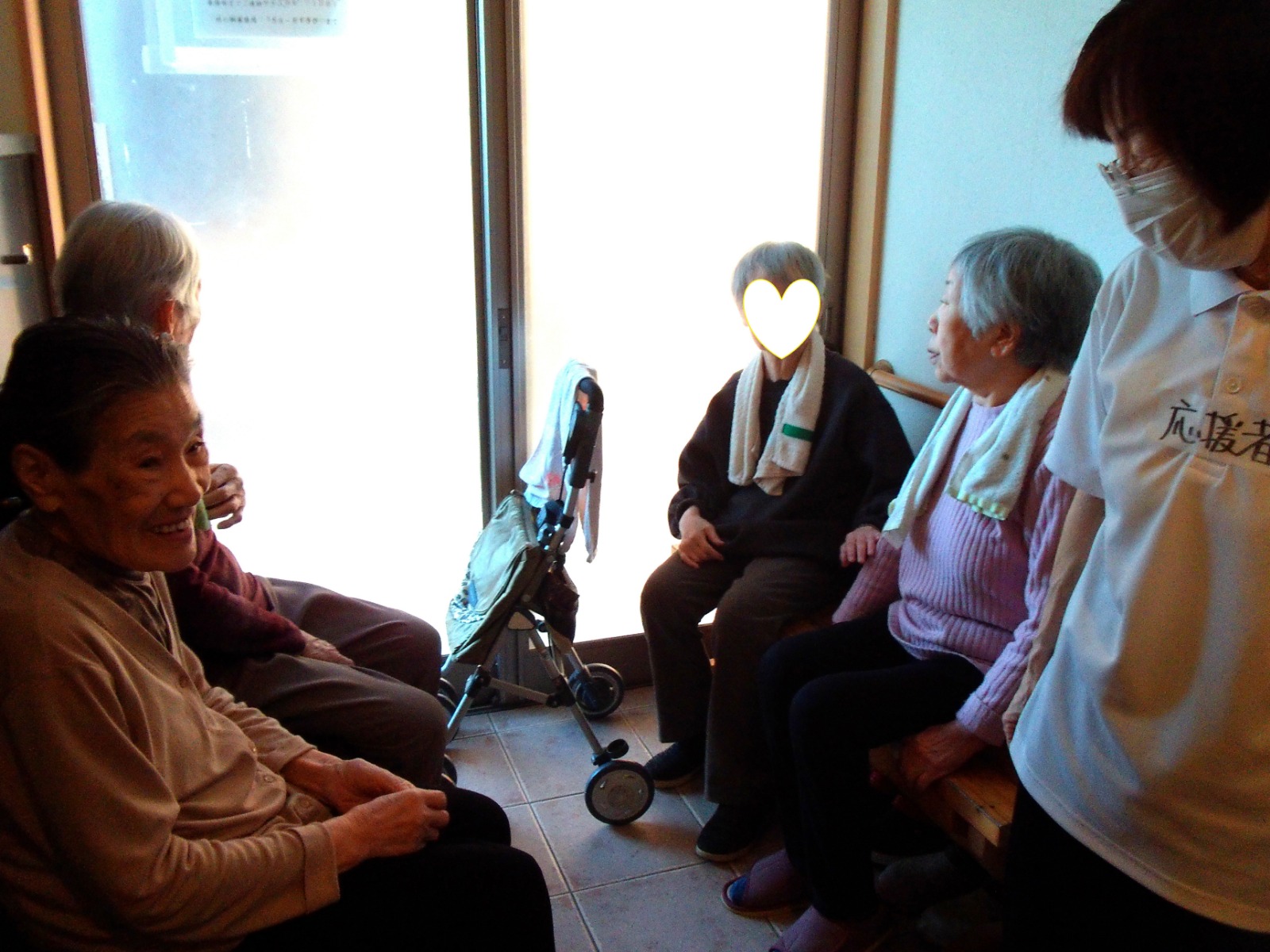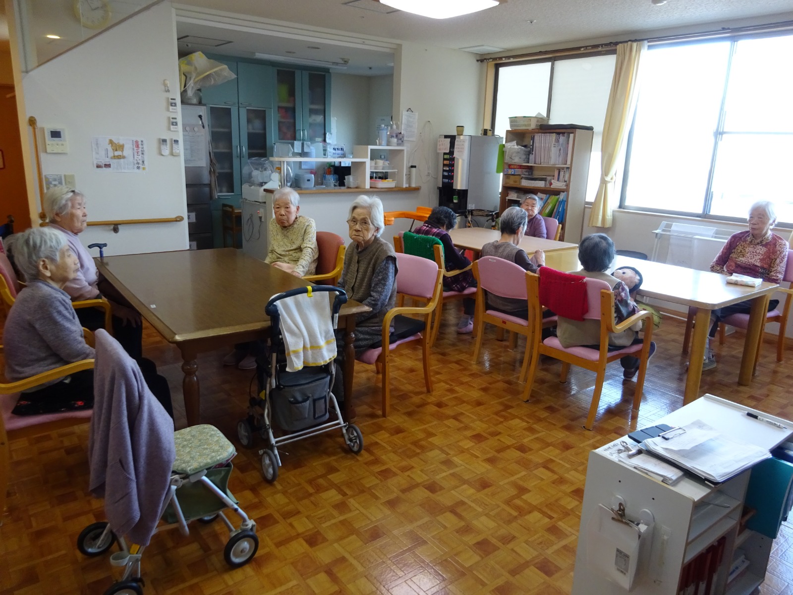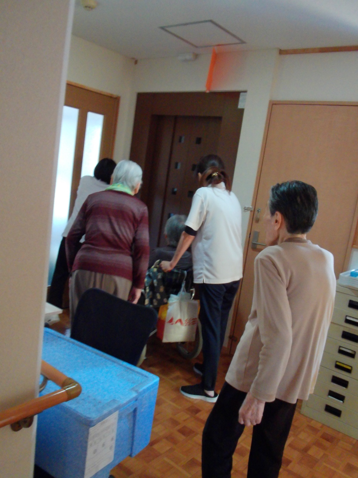 夜間想定の合同火災避難訓練を実施致しました。てらいホームは、火元から離れている設定だったので一階ききょう玄関で待機でした。