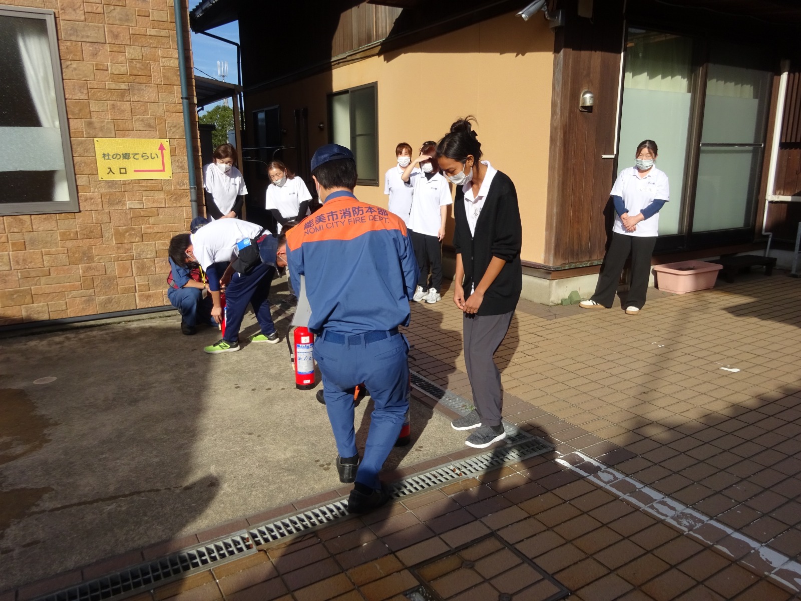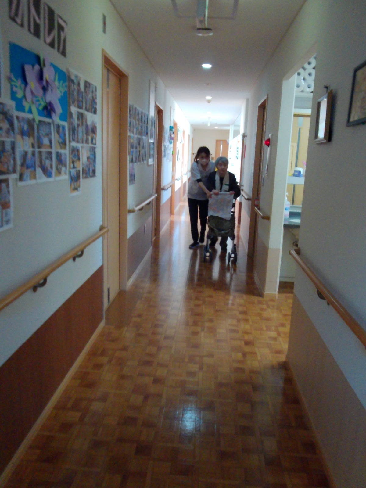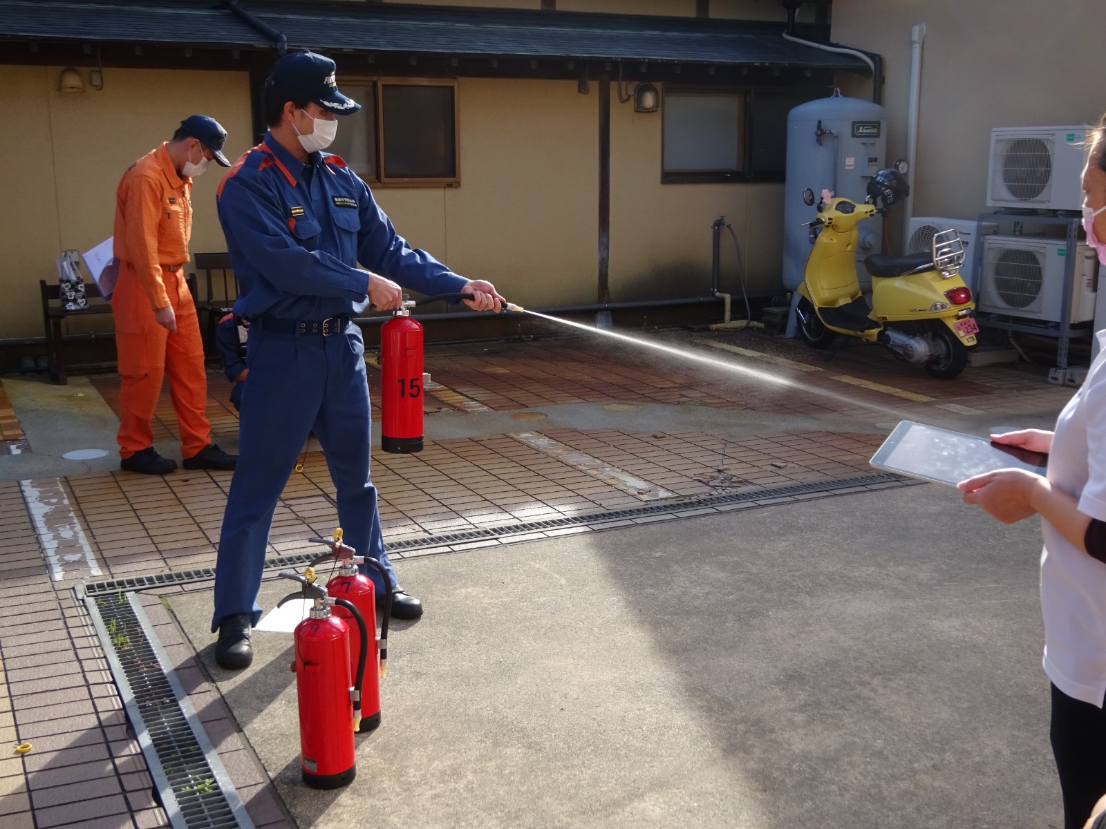 夜間想定の合同火災避難訓練を実施致しました。てらいホームは、火元から離れている設定だったので一階ききょう玄関で待機でした。