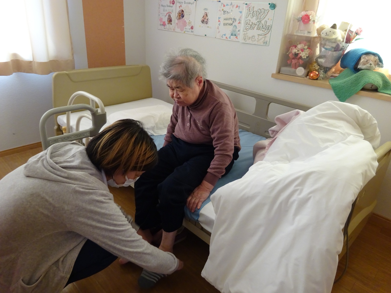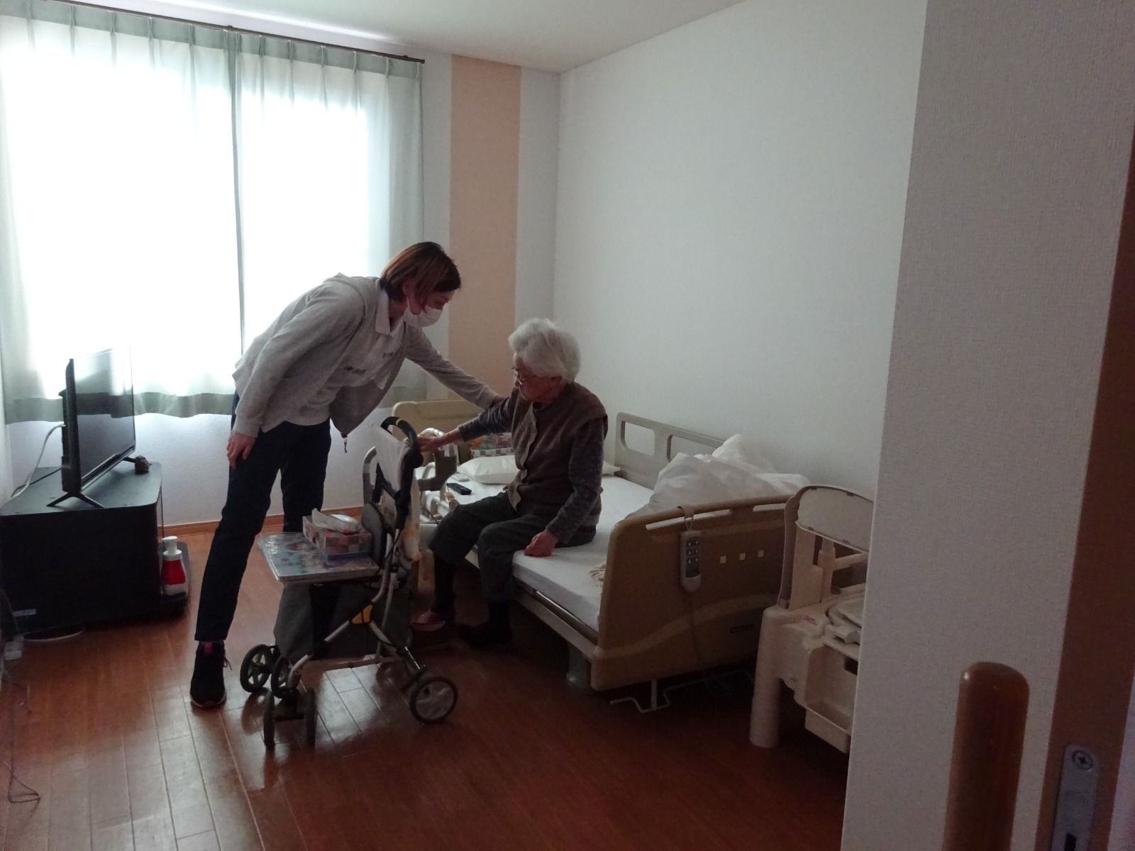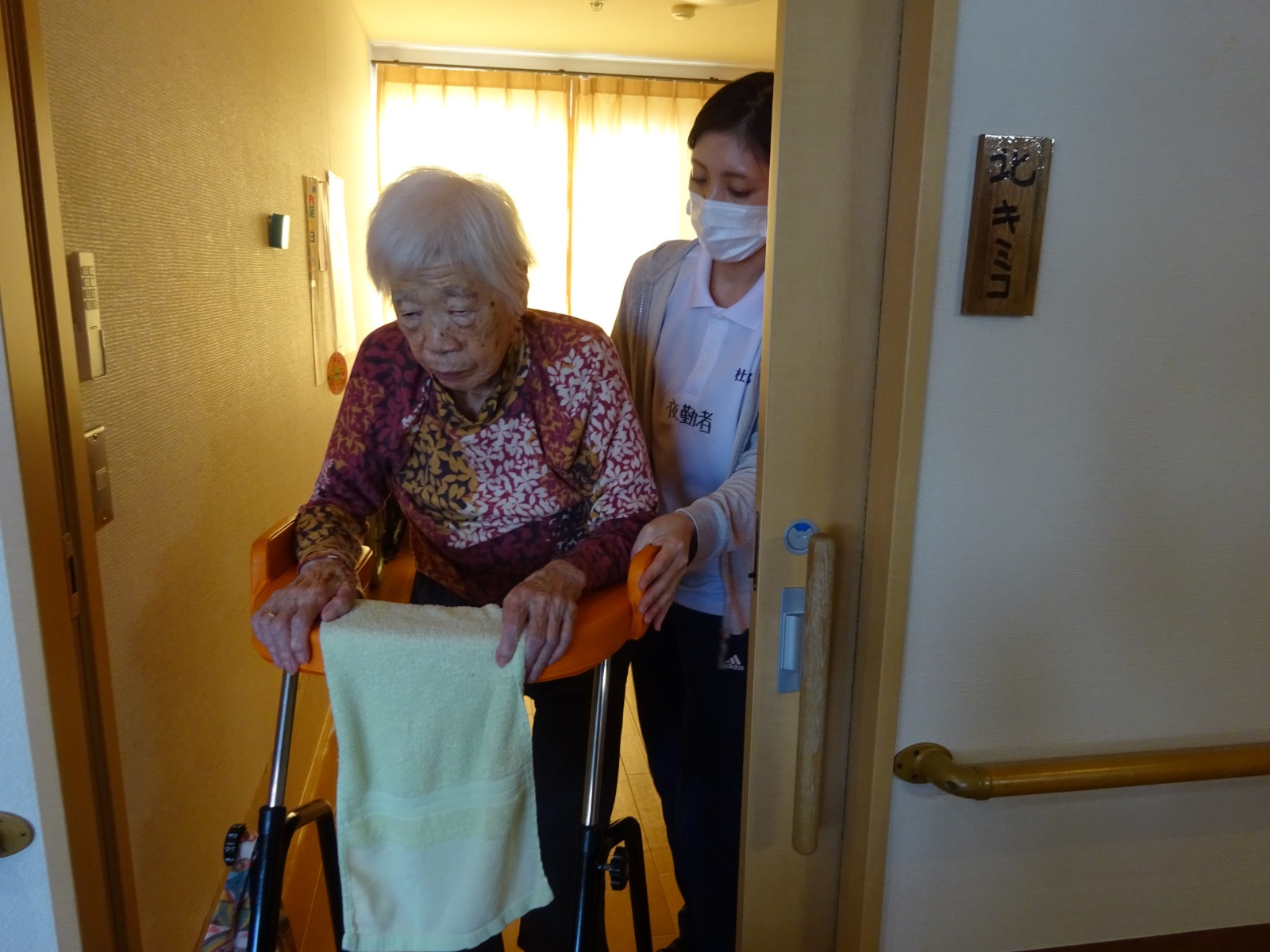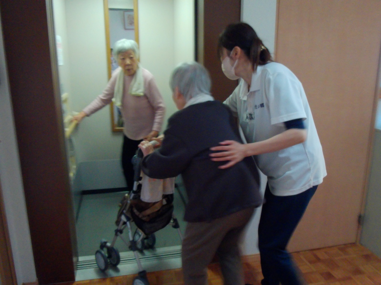 夜間想定の合同火災避難訓練を実施致しました。てらいホームは、火元から離れている設定だったので一階ききょう玄関で待機でした。
