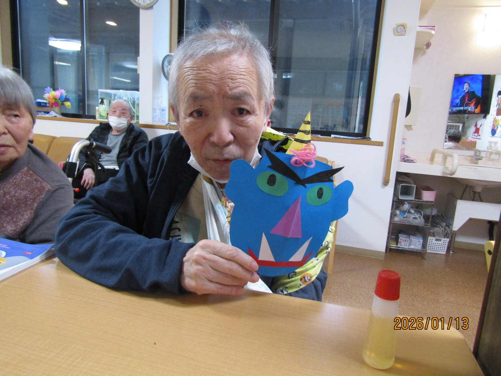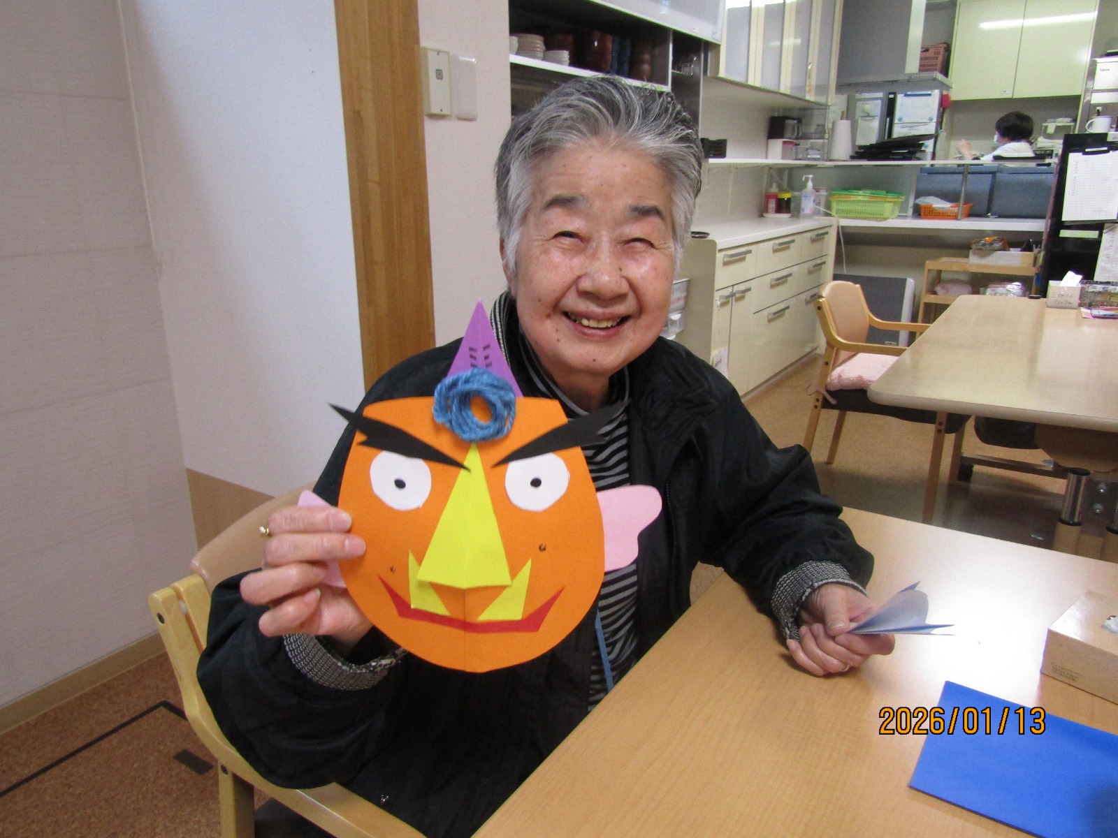 鬼の仮面を作る担当と、如月の模様を作る担当で分かれて作成をしました😃