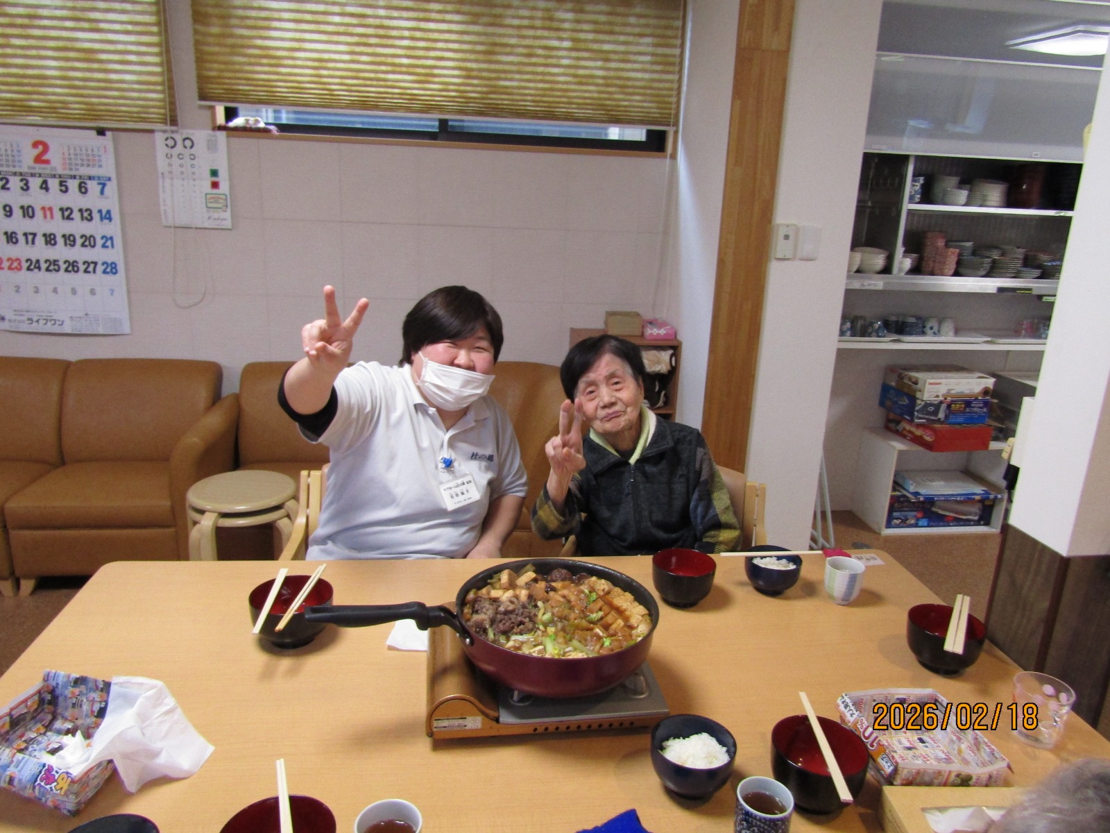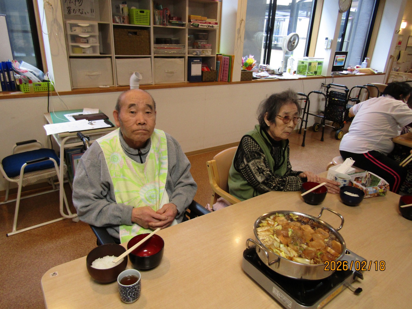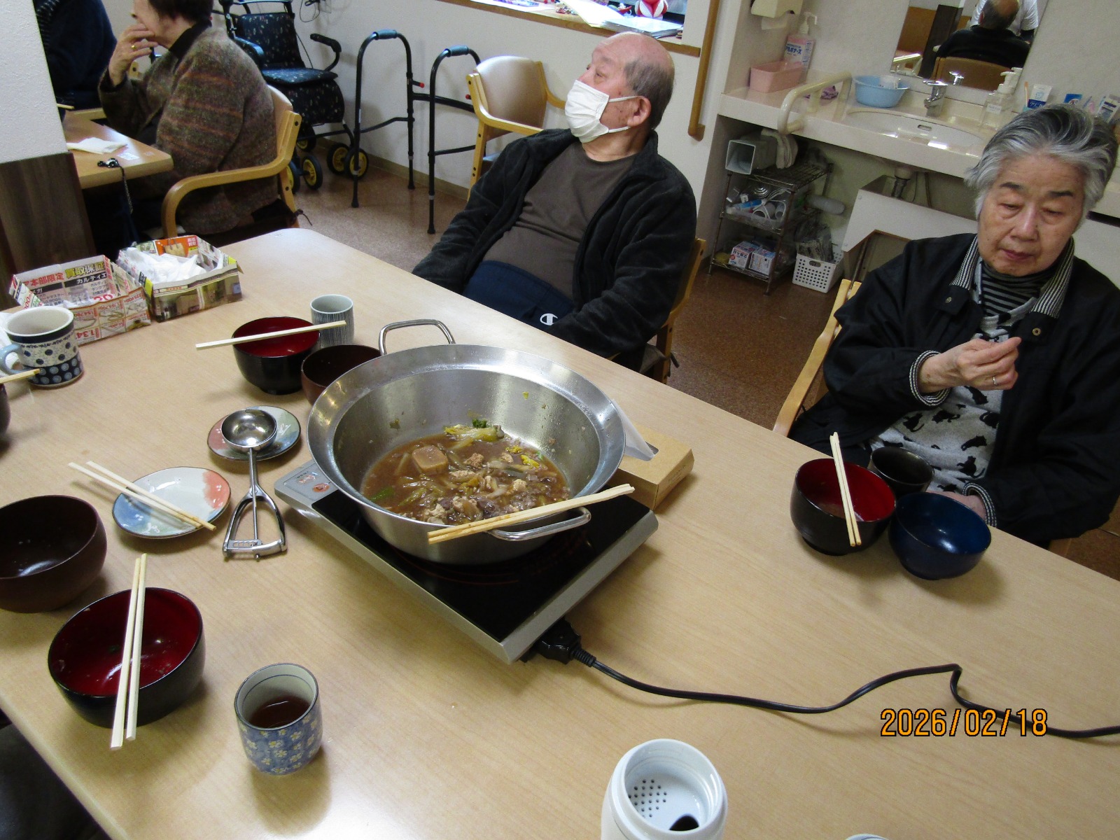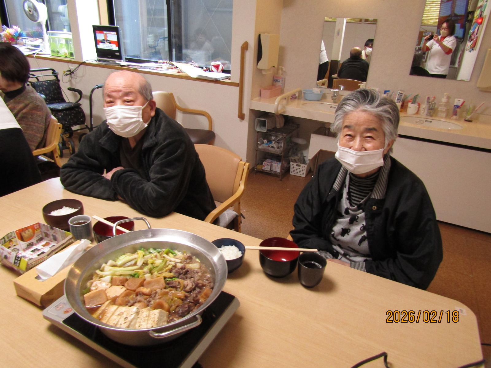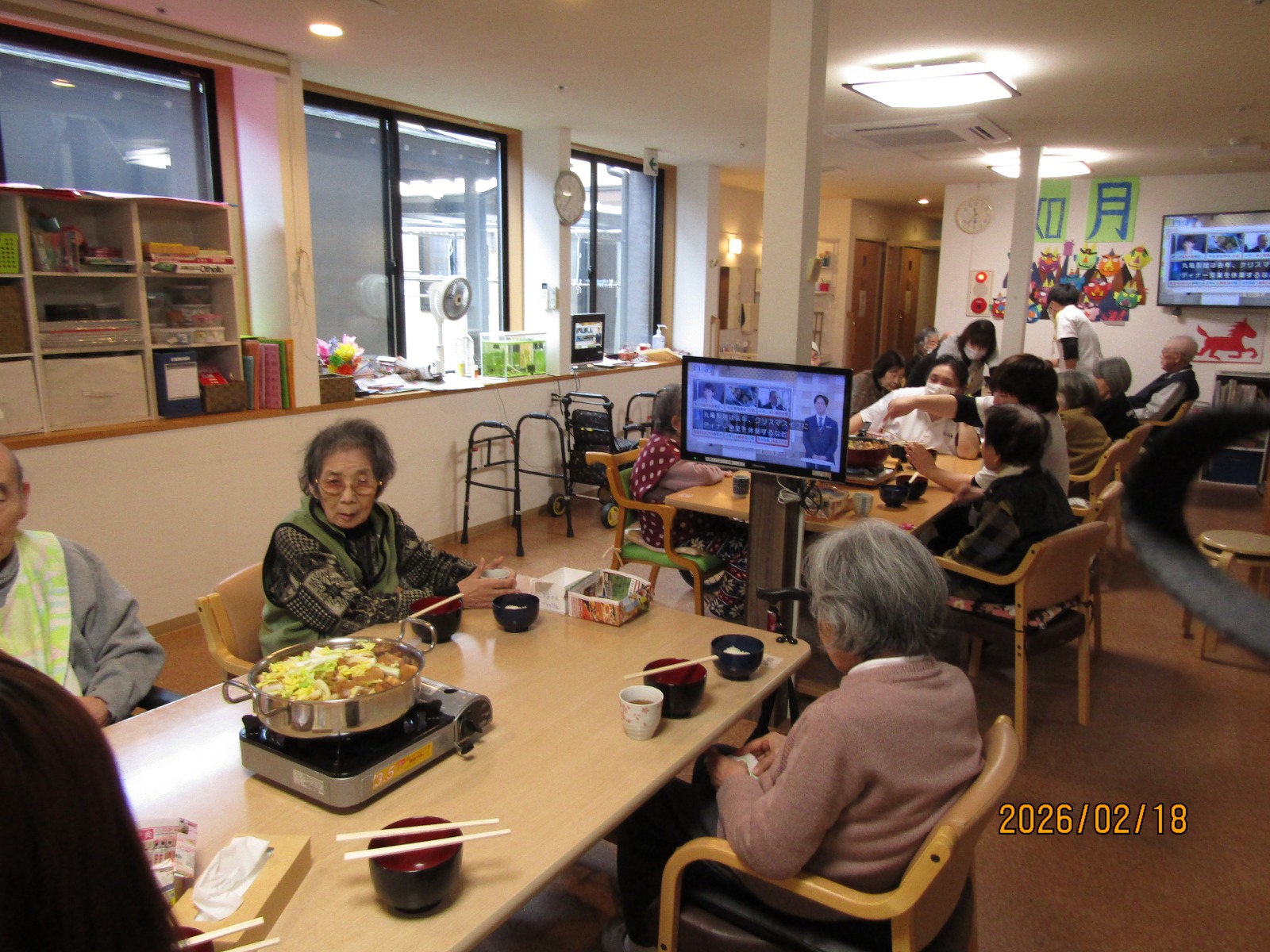 入院などをされている方を除いた方々に通所していただき、鍋を囲みました😁😁