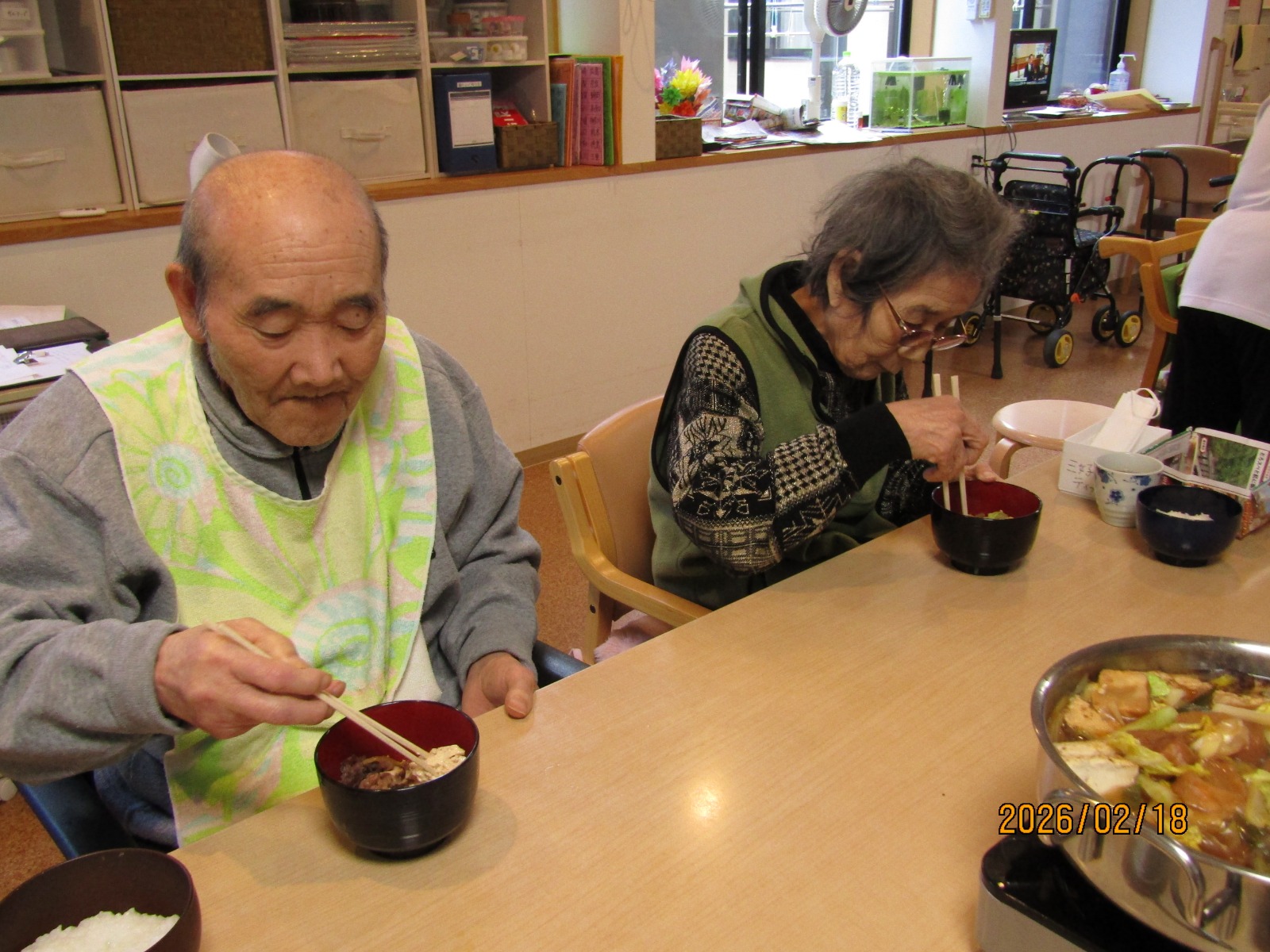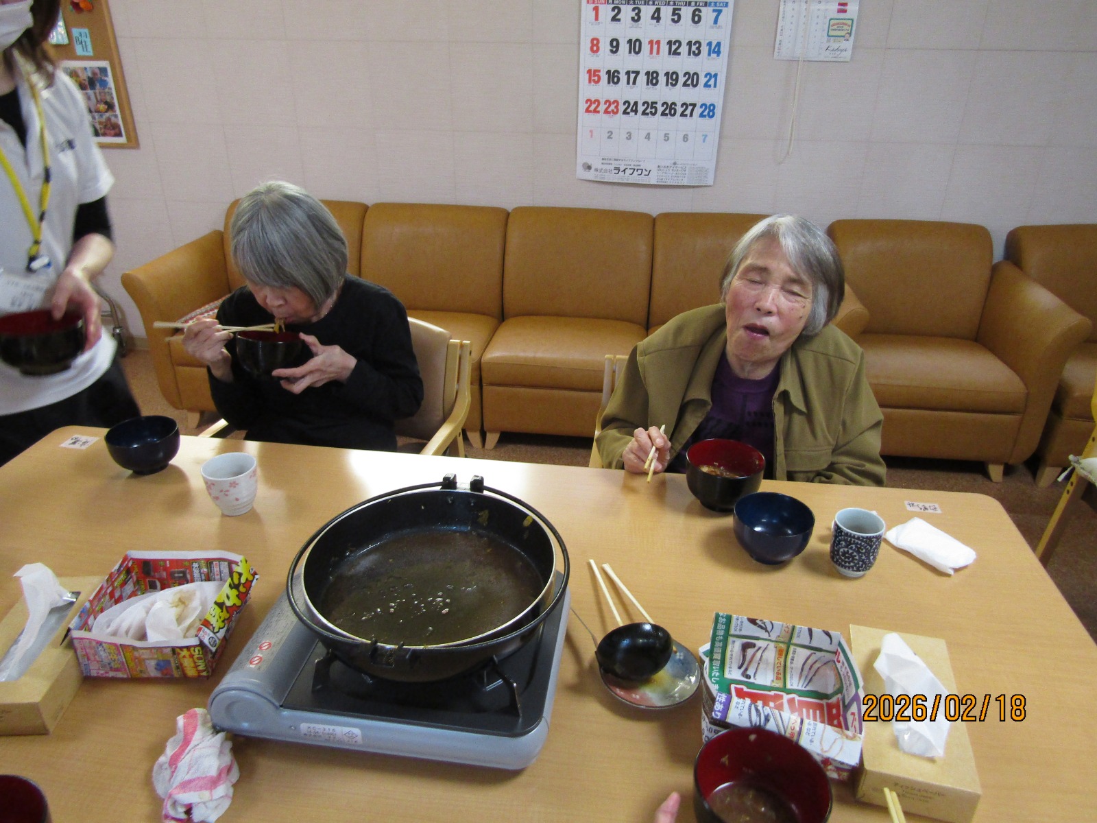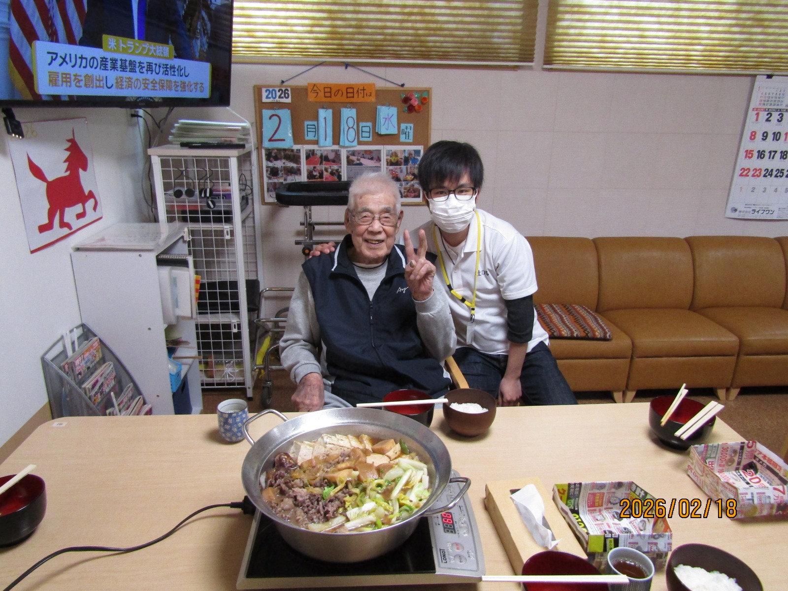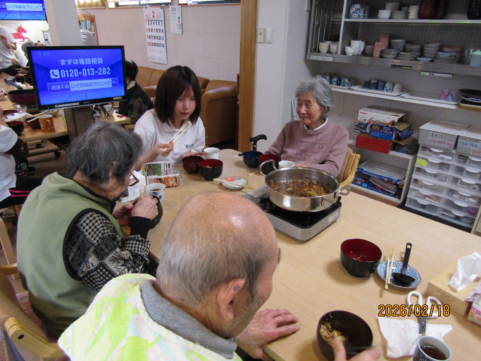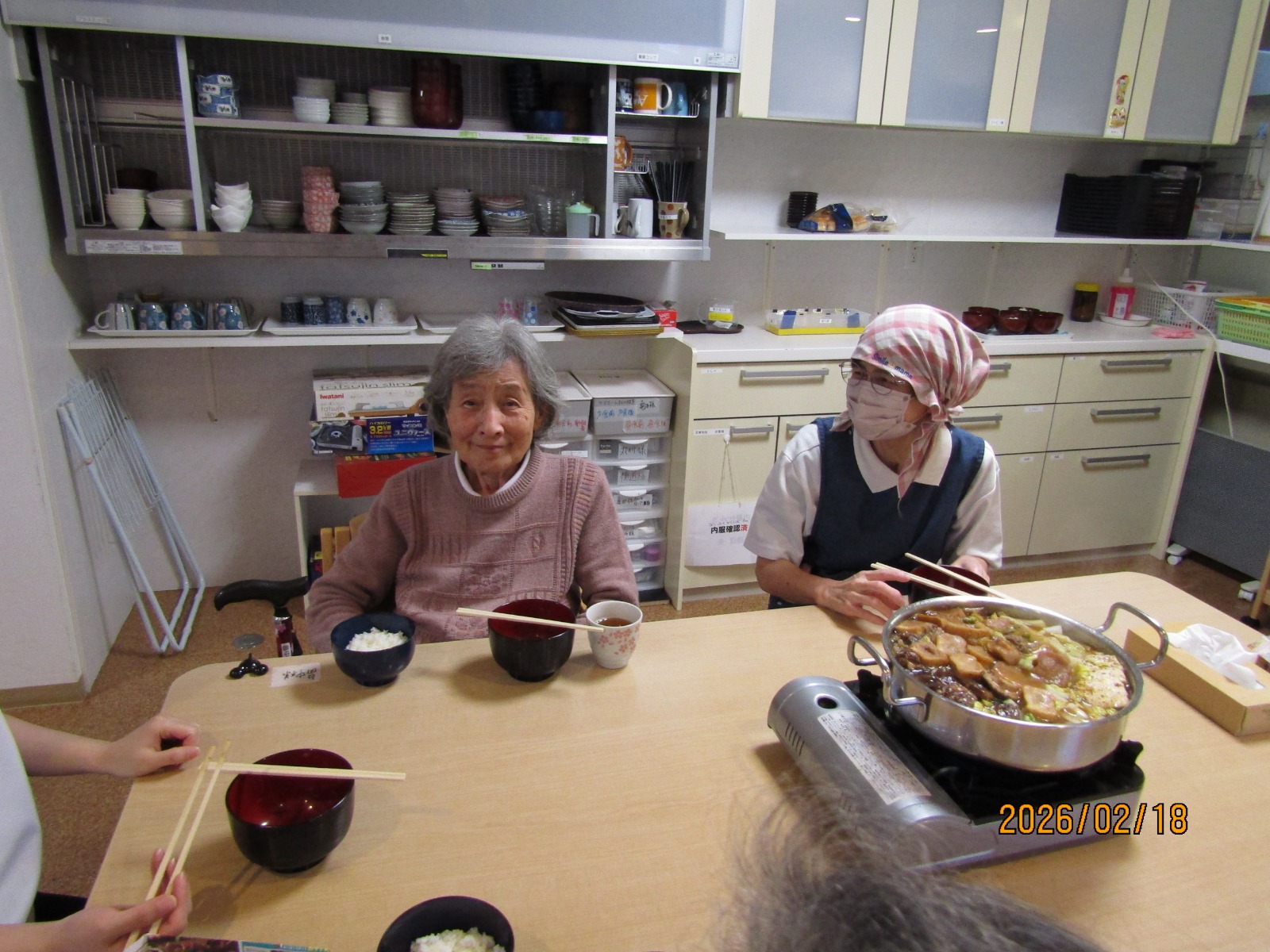 入院などをされている方を除いた方々に通所していただき、鍋を囲みました😁😁