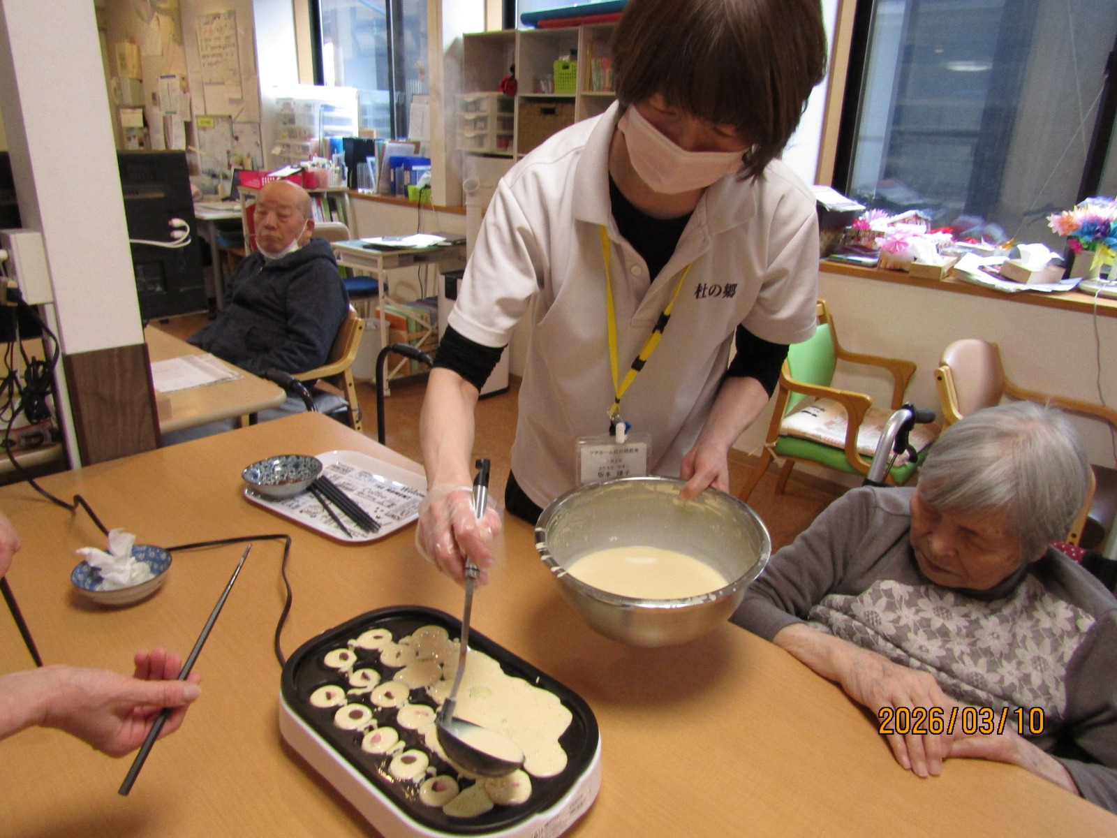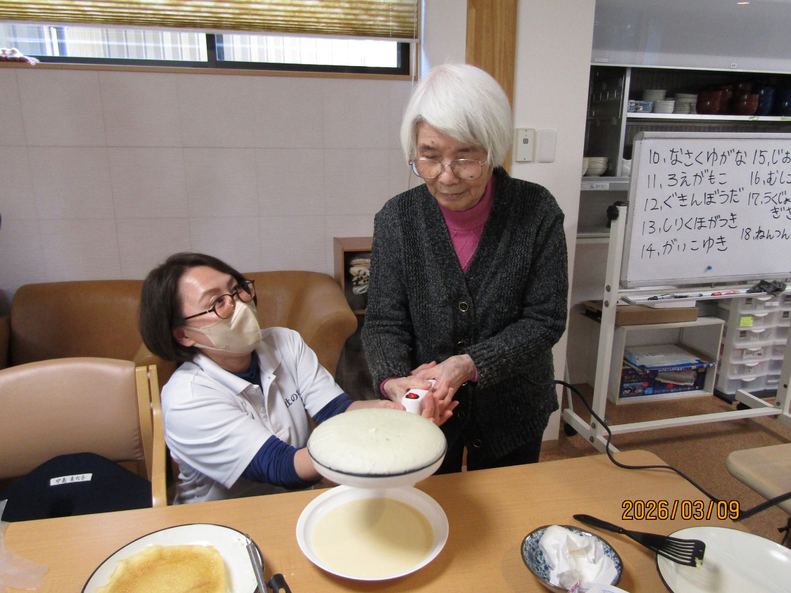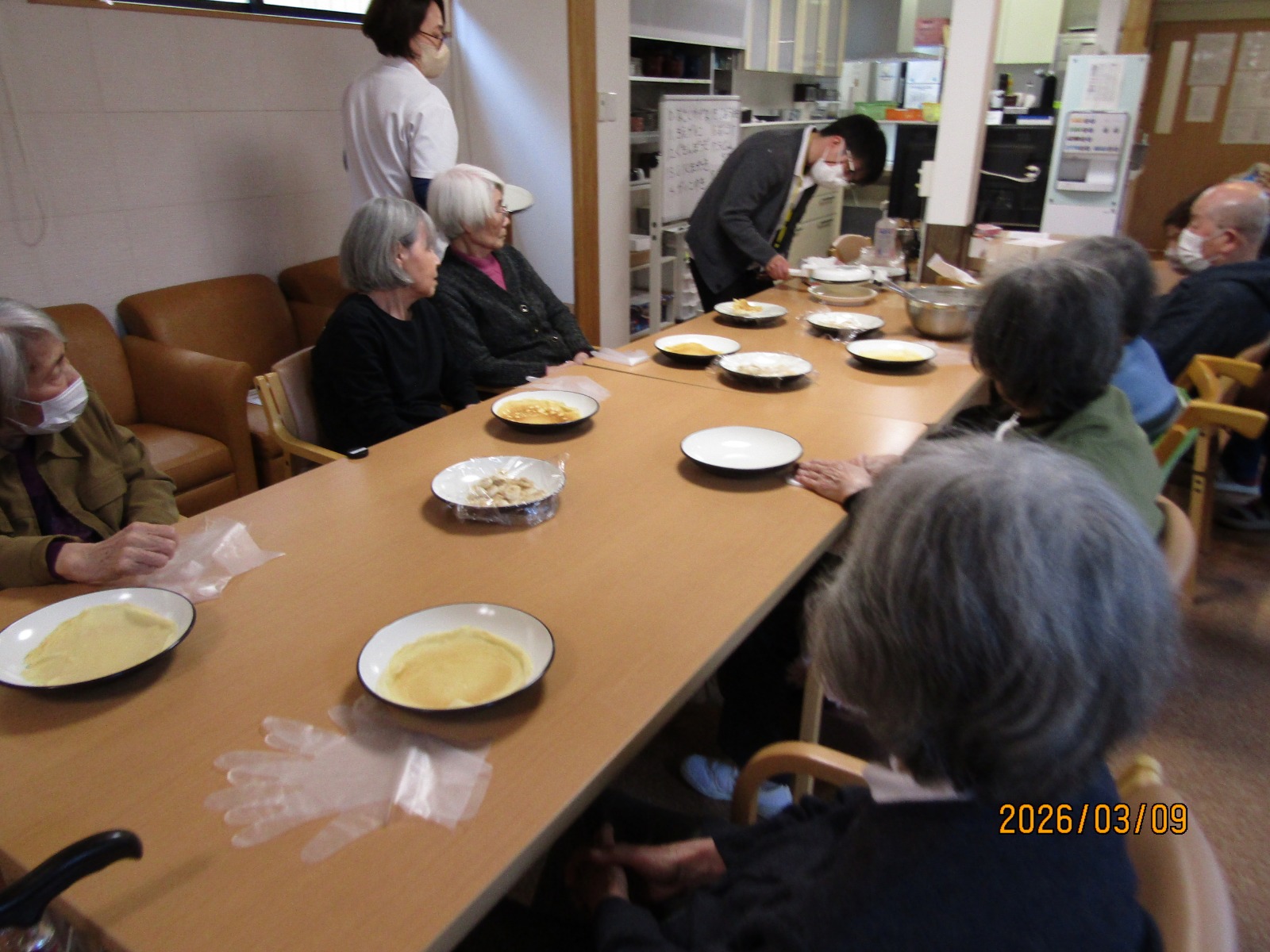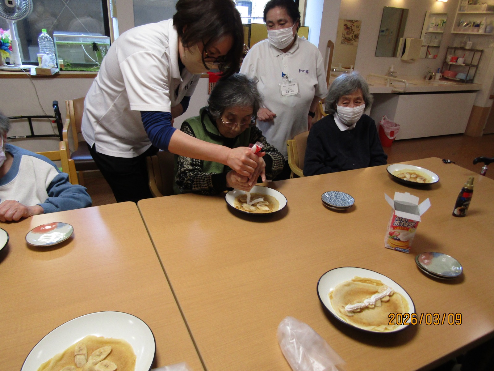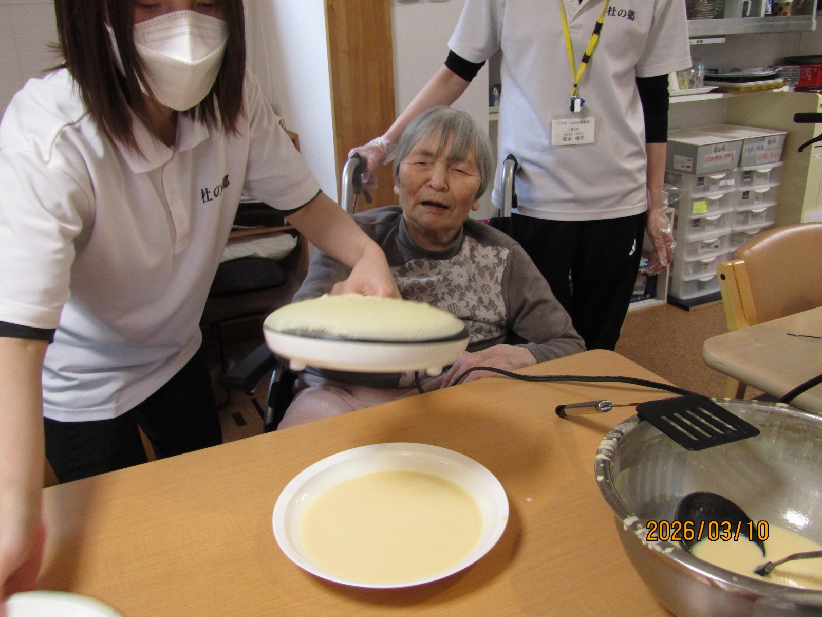3月9日に利用者様と一緒にクレープ作りを行い、3月10日にはベビーカステラをおやつの時間に提供させていただきました🤤