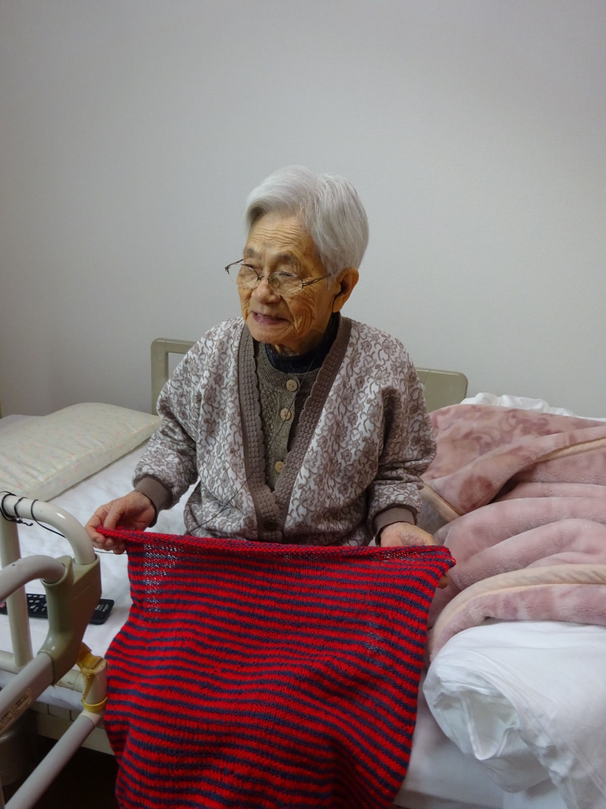 棒針でひざ掛けを手作りしました。🧶👏