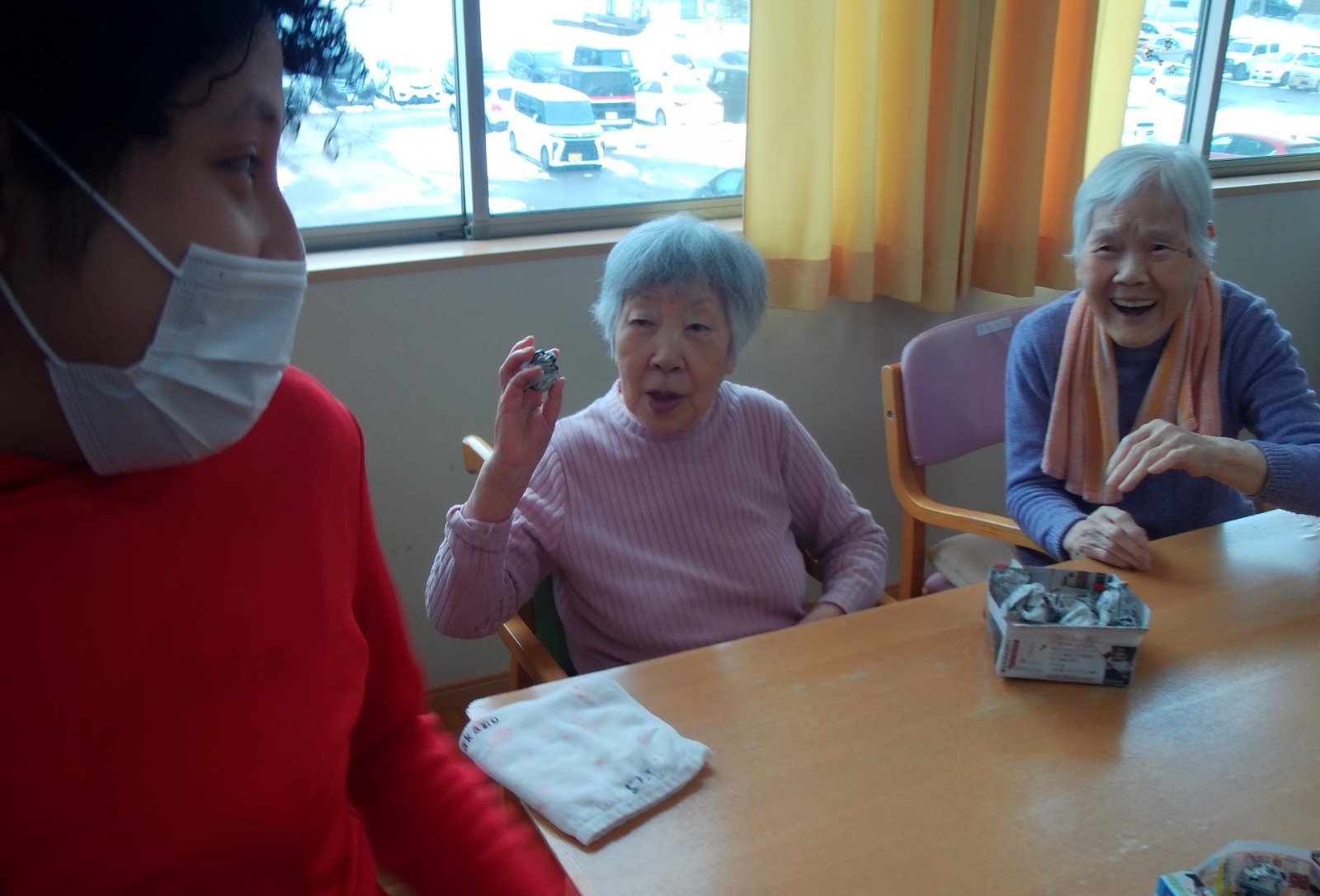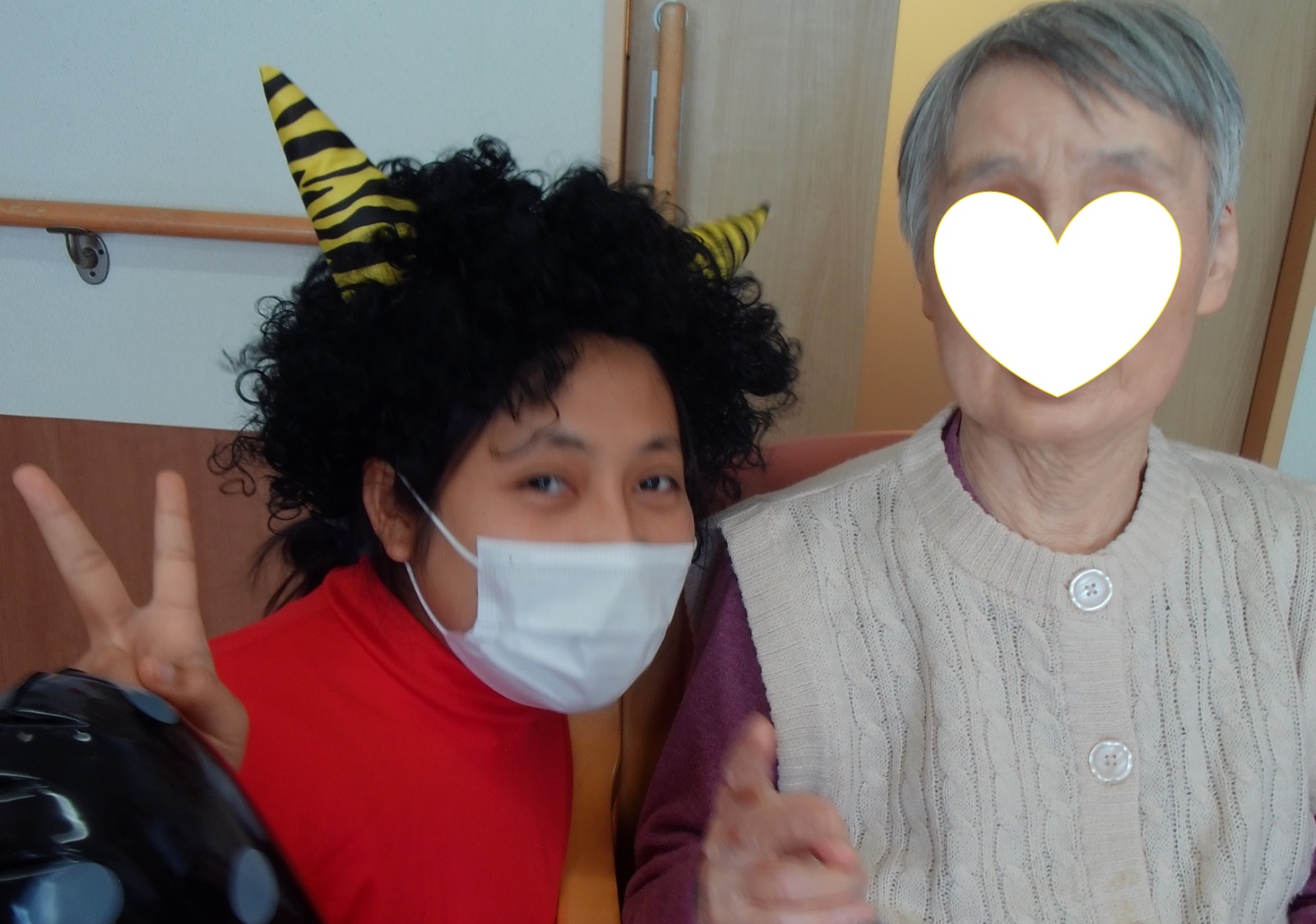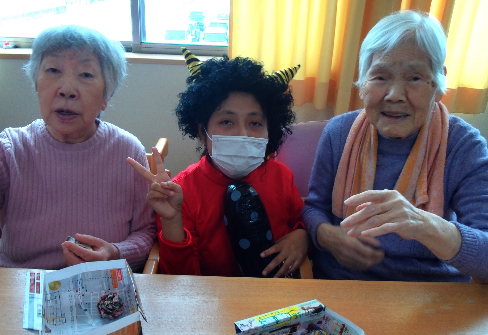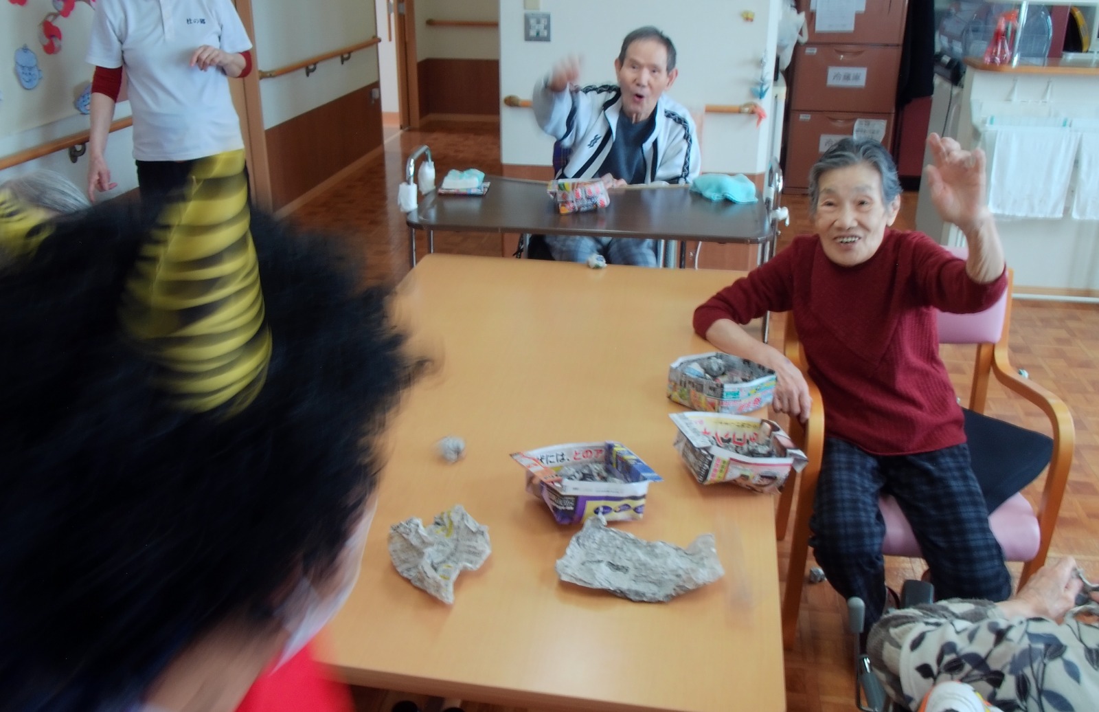 午後は、豆まきを楽しみました。豆の代わりに新聞紙を丸めて「福は内~、鬼は外~」👏