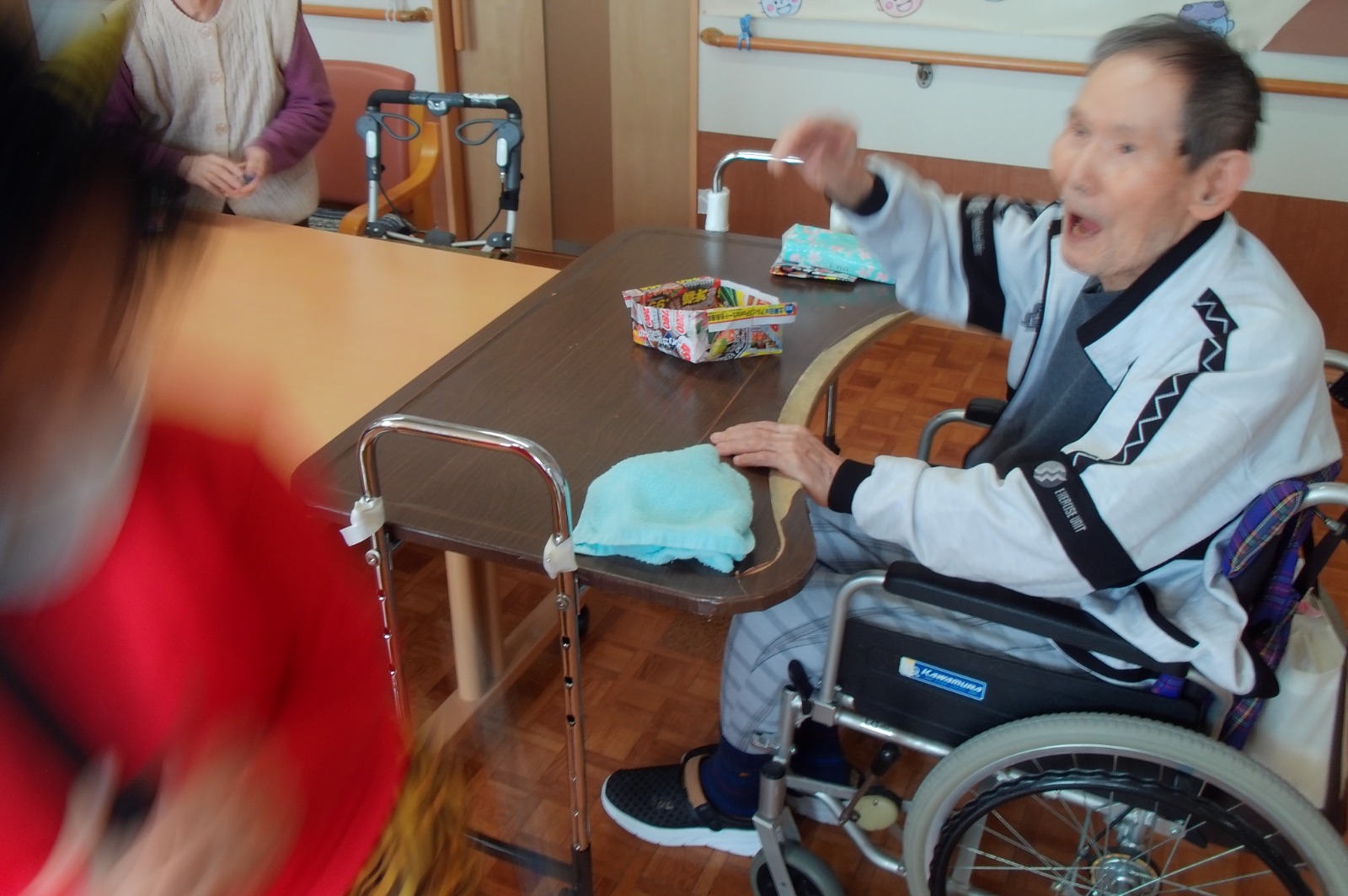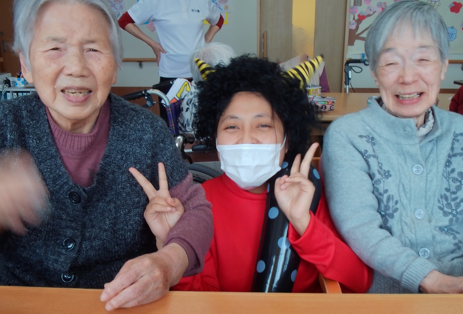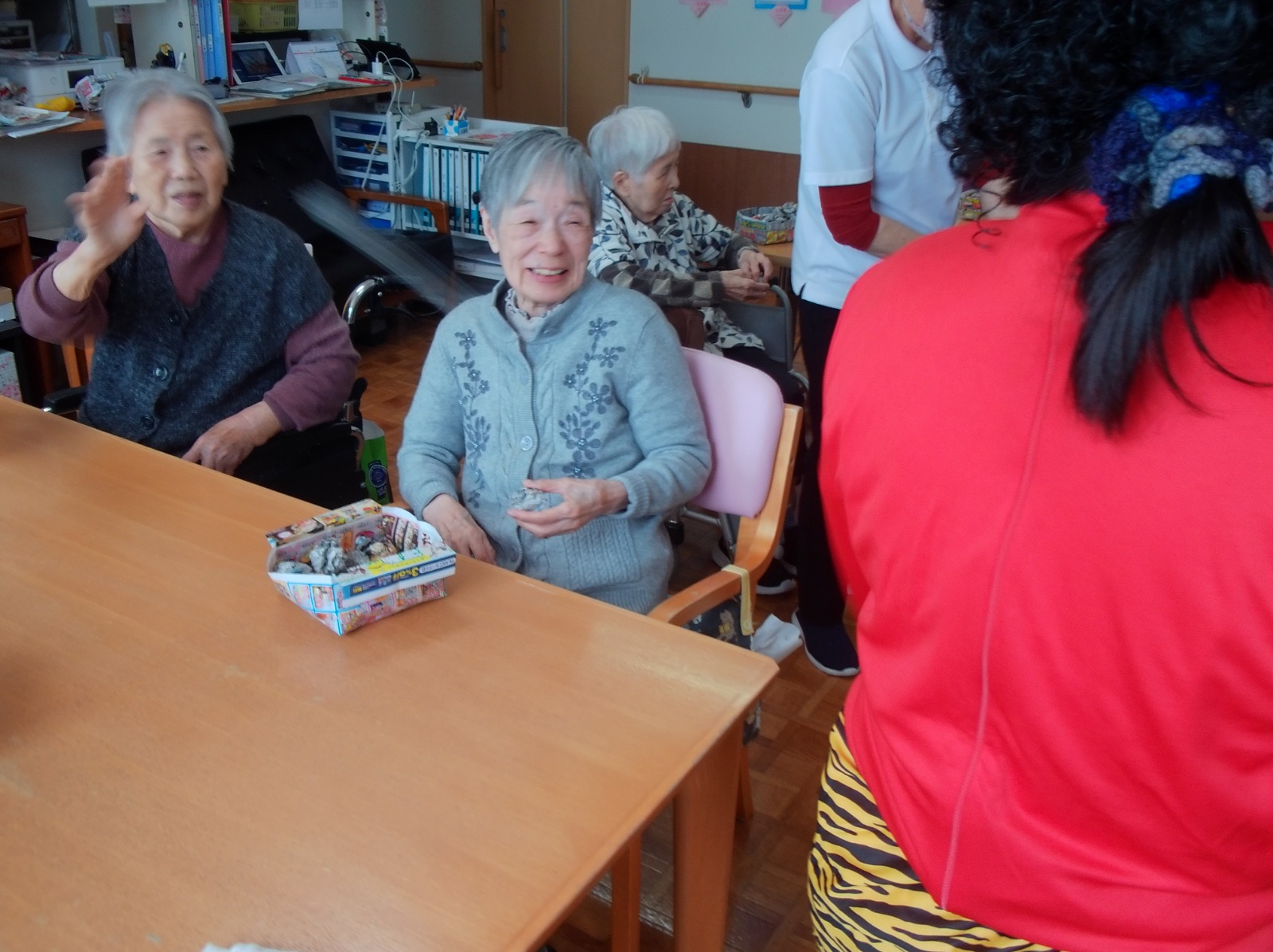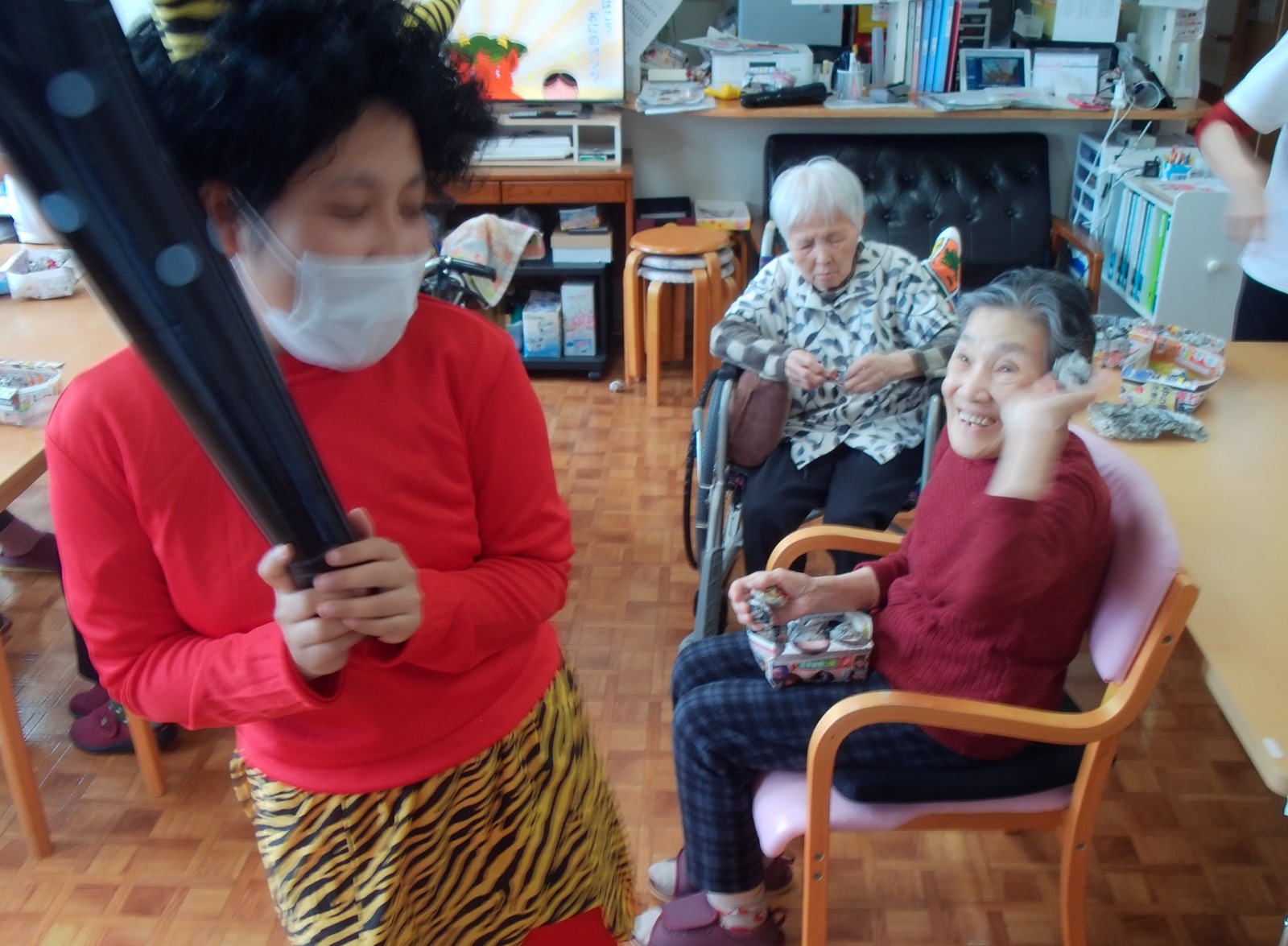 午後は、豆まきを楽しみました。豆の代わりに新聞紙を丸めて「福は内~、鬼は外~」👏
